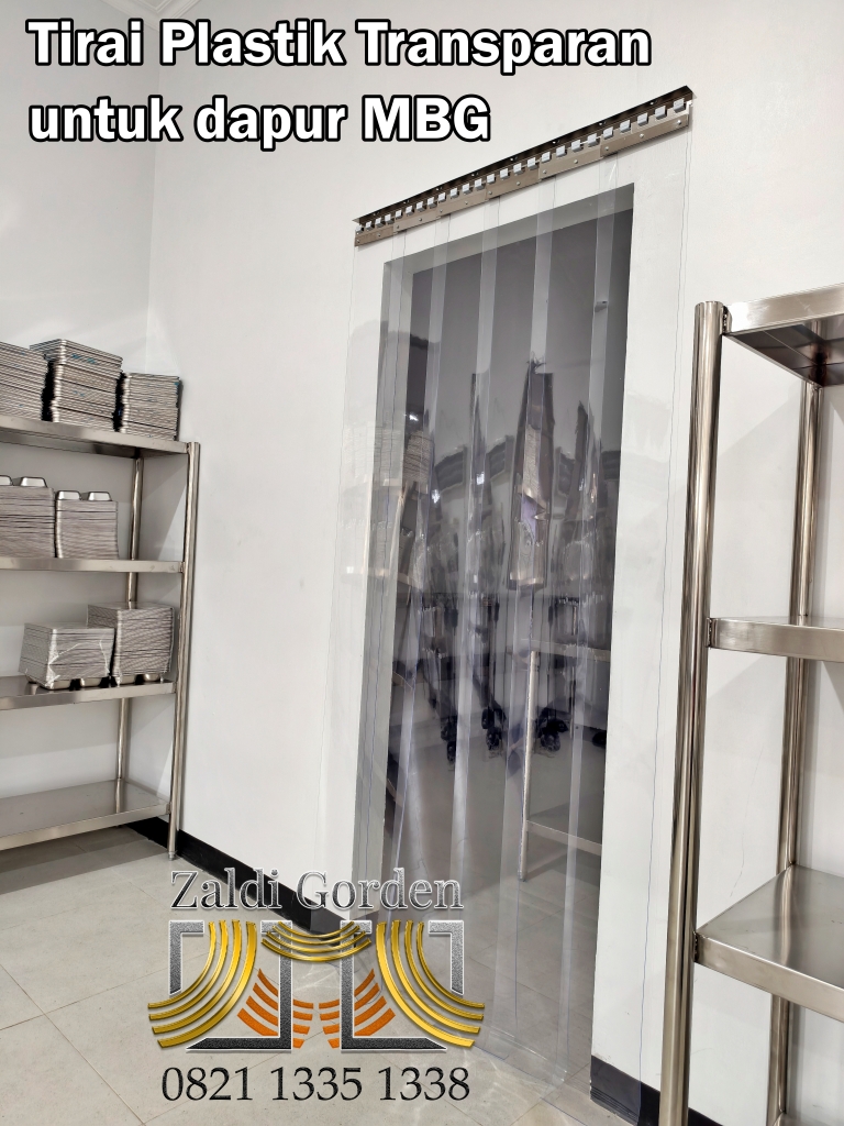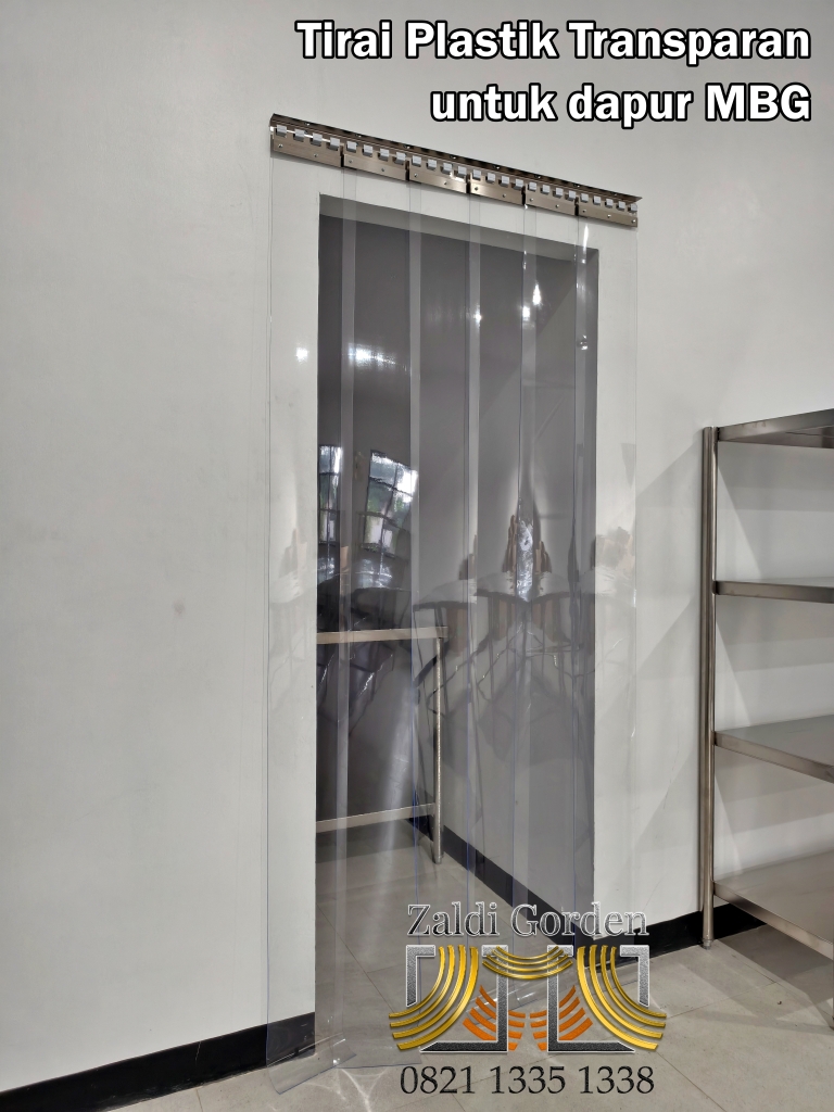 Tirai plastik transparan berkualitas Grade A yang memberikan isolasi optimal dan daya tahan tinggi, ideal untuk dapur dan area industri.